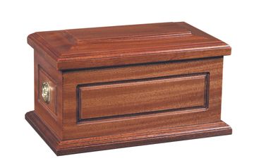 A Dark Mahogany Oak ashes casket.