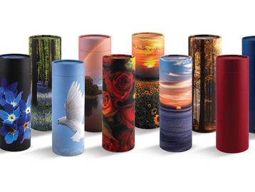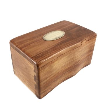 A handcrafted personalised ashes casket available in a range of colours and designs and traditional font