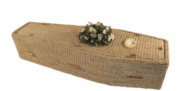 Our Pandanus coffins are made in Indonesia in only World Fair Trade Organisation accredited workshops, making a real difference to the lives of the local people. The pandanus coffins are made from the leaves of a prolific growing plant, a provider of a highly renewable and sustainable material. The dried leaves are being twisted into cord using traditional methods, then woven and coiled around a natural cane framework.